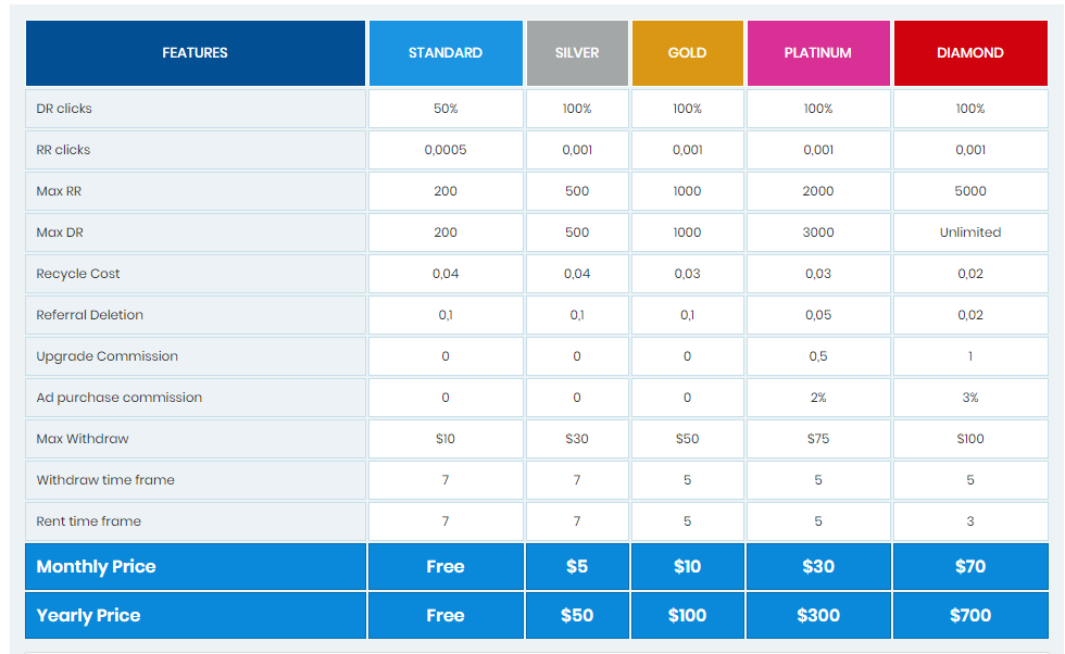 Так же за любое обновление вам дают каждый день 6 шт. Премиум ссылки по 0.01$