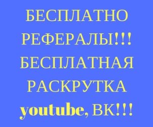 БЕСПЛАТНО РЕФЕРАЛЫ!!!БЕСПЛАТНАЯРАСКРУТКАyoutube, ВК!!!